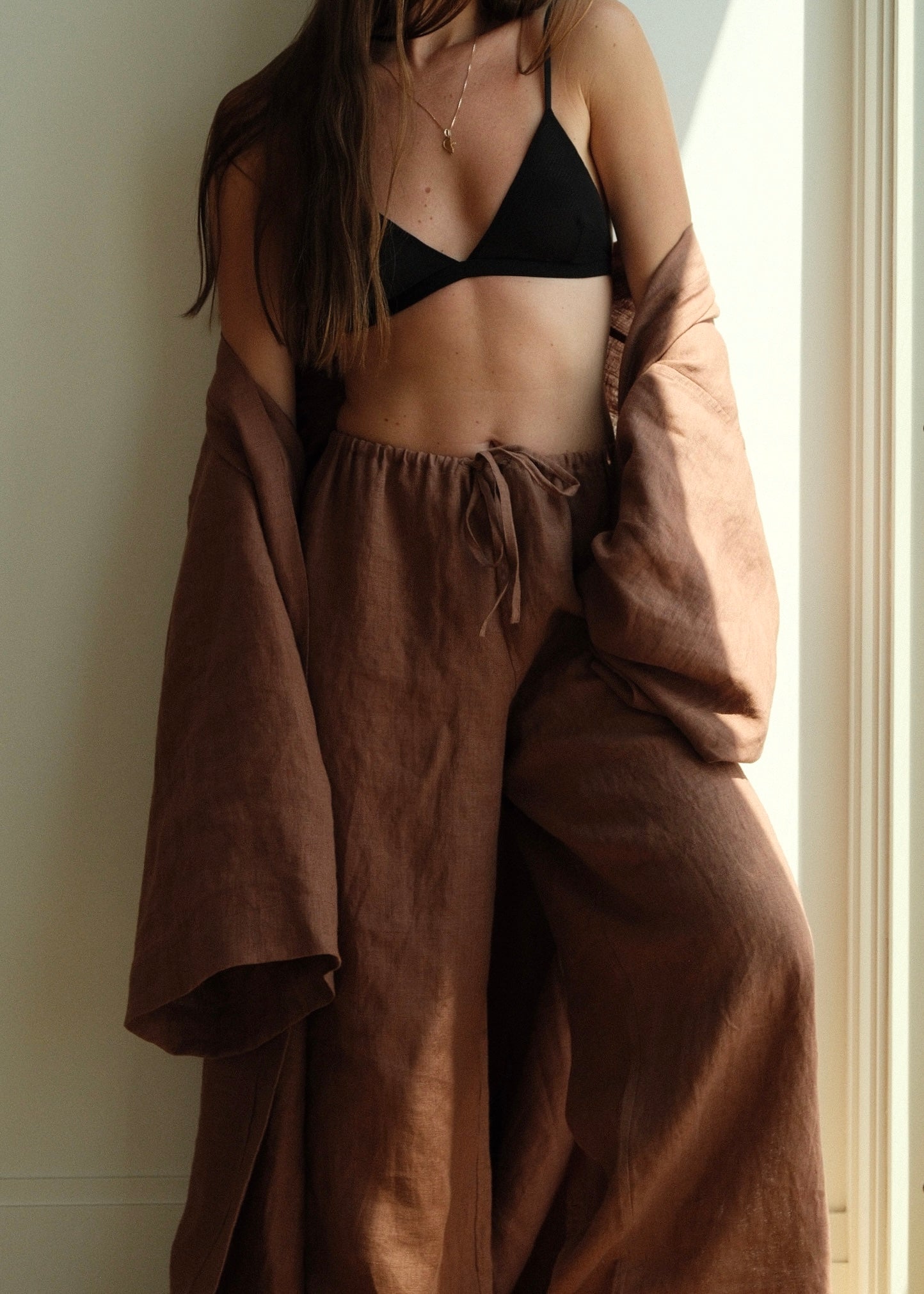 Crafted from 100% premium linen, they’re soft, breathable, and designed to move with you. Whether you’re unwinding at home or stepping out for a slow morning walk, these pants are your everyday essential for effortless ease and natural rhythm.